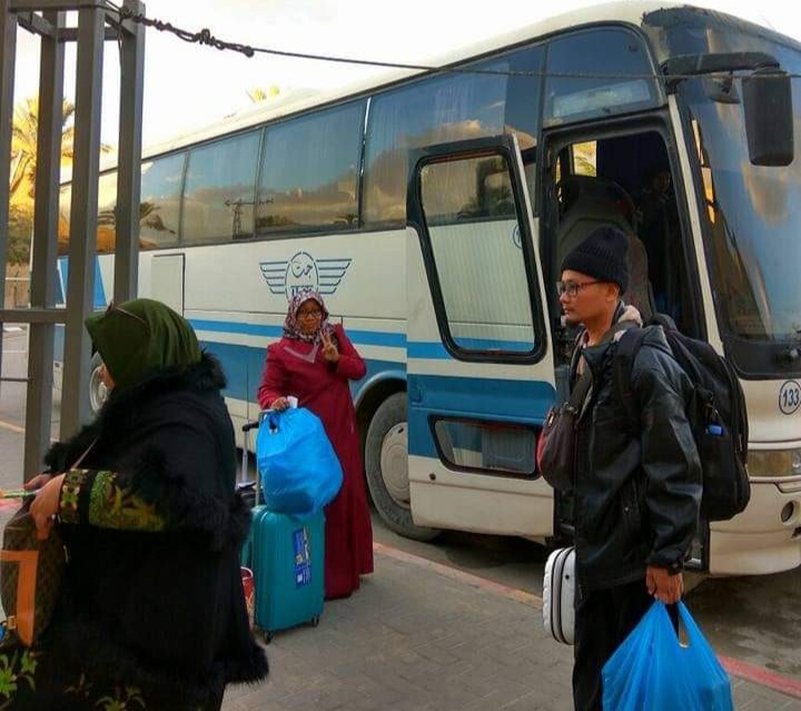 Setelah membeli tiket di Border Jordan, kami diarahkan ke bus yang sudah tersedia. Dalam bus, kami bareng dengan beberapa orang dari beberapa negara. Terlihat jelas dari perawakan dan cara mereka berpakaian. Ada yang menggunakan jilbab, ada juga yang berambut pirang dan terurai. Beberapa diantara mereka terlihat seperti sedang backpackeran, karena terlihat membawa ransel besar yang mereka letakan di samping tempat duduk.